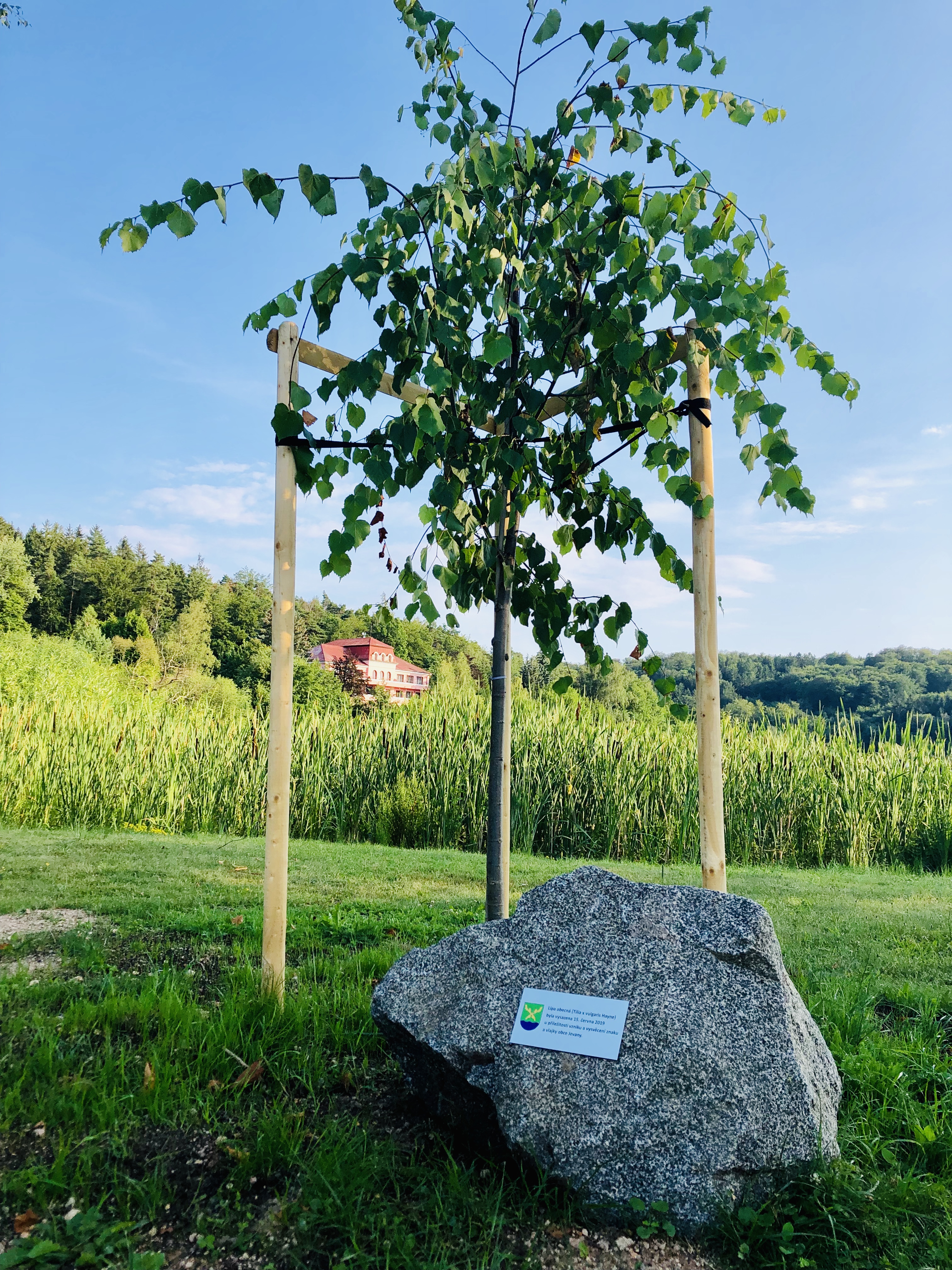 Centrum obce, lípa obecná, vysazená u příležitosti vzniku znaku obce, 2019